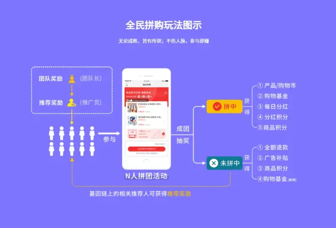 为了解决这些问题,全民拼购应运而生。全民拼购是一种结合了社交电商和拼购玩法的新型卖货模式。通过更人性化的奖励机制,全民拼购最大化地将产品销售中的利润让利于参与拼团的用户。这种模式激励用户参与和分享,同时也能够带动平台产品的销售,实现多方共赢的效果。