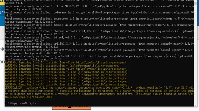 我的pip install transparent-background安装以后出现这个是什么问题呢,有没有大佬帮忙看一下这个有没有安装好