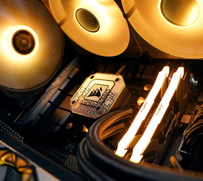 搭配 CPU I7 13600K,散热器选用的是美商海盗船 iCUE H150i ELITE CAPPELLIX XT 炫光版 360 水冷,混搭贼船独家的 iCUE 灯光搭配,实现不一样的灯光效果,实际散热效果也还不错。