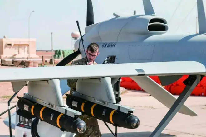 花絮上为我们展示了无人机挂载的导弹,编号为fgm-529c,fgm是美军的编号意思就是空对面导弹。所以这款导弹应该是美国制造的反坦克导弹