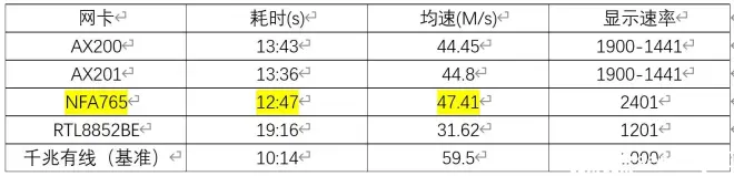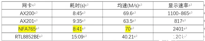 实测,NFA765对比AX200几乎无提升,但8852是真的烂的过分