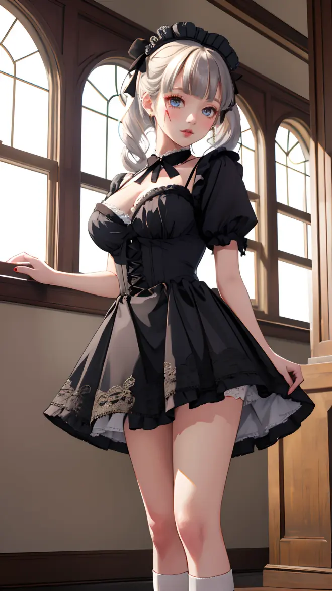 1girl,(full_shot:1.2),(upskirt:1.2),standing,exquisite makeup,rich in detail,ornate pattern,perfect body,clothes_prompt,professional photograph,indoor,(lolita:1.1),
