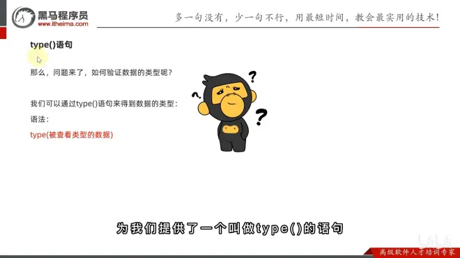 通过这张图可以了解到,type()函数不仅能够查看<字面量>的数据类型,也能查看变量内存储的数据类型。
