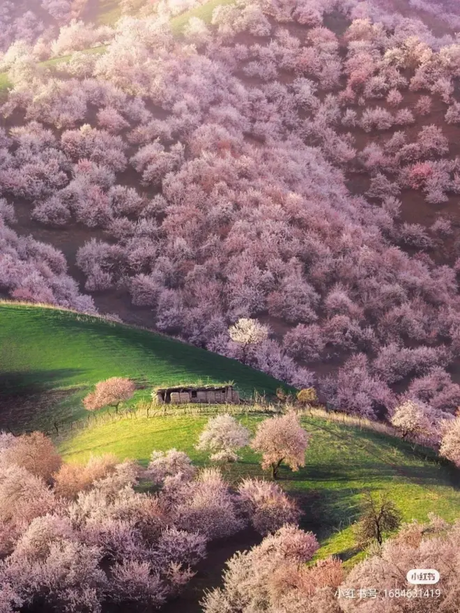 3月,帕米尔高原上的杏花悄悄绽放,漫天遍野,都是粉色的花海。杏花遇到丁达尔效应,像极了现实中的“桃花源”。这是一片公元14世纪遗留最大的原始野杏林,是新疆乃至全球最大最集中的野杏林分布区,占地面积达到3万多亩。