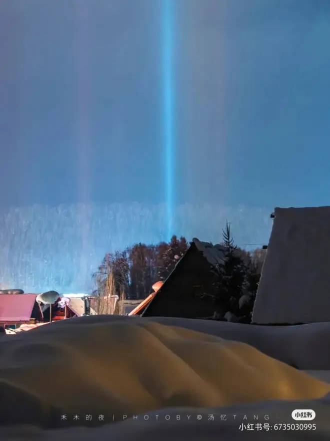 一道道寒夜光柱,像是《流浪地球》中的行星发动机,直通寒夜天空。