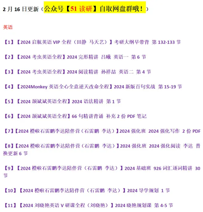 【2月16日】考研资料更新