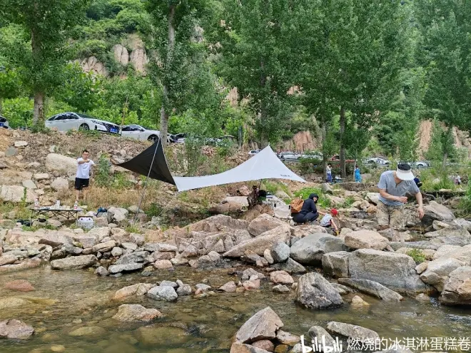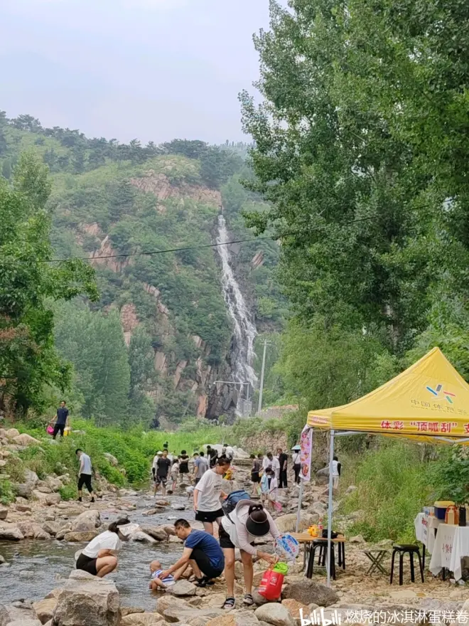 孩子期末考试结束了,想着周末带孩子去玩水。经朋友推荐,找到了一个炎炎夏日、带孩子免费玩水的好地方。周日一早,收拾好装备就出发了,我们到的时候快十点了,河道边的道路两侧已经停好多车了,河道里游玩的人已经很多了。有的大人们忙着搭建露营装备,有的则陪着孩子们在水中玩耍,各种玩水的装备齐上阵。孩子们看到水,都兴奋极了,拦都拦不出住的直奔水中,不一会全身就都湿透了。这边的河道不宽,水也不深,很安全;河道里的水很凉爽,坐在石头上,双脚放在水中,那叫一个美字;不远处的山上还有瀑布,犹如银河落九天,景色很美丽。 炎炎夏日,陪着孩子们来到这样一个清凉的玩水好地方,亲近下大自然,孩子们玩的很尽兴,大人们也能缓解一周的工作疲惫,这不正是生活中的小美好嘛。