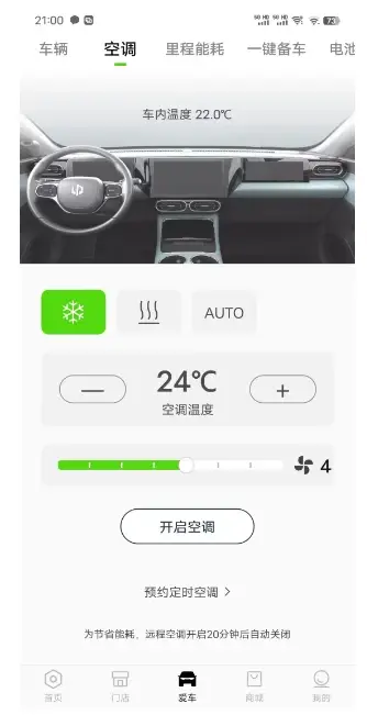 临时出行不同于常规,突然就要出去,但是一般从有念头到实际出发 还有一定的时间距离,这个时候可以用小零第二大神技:App开启空调。 功能入口:APP-爱车-车辆-开启空调按钮