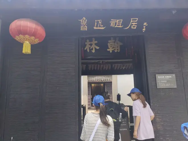 稍走几步,便能看到鲁迅故居的大门了,显而易见的便是由郭沫若为先生题写的牌匾“鲁迅祖居”四个大字,其后又提写有“翰林”二字,队员对此表示不解于是向讲解员提问,原来是从鲁迅的祖父周福清那里传承得来的牌匾,彰显出周氏家族的尊贵地位与书香门第的大家风貌。这便是第一进,称台门斗。