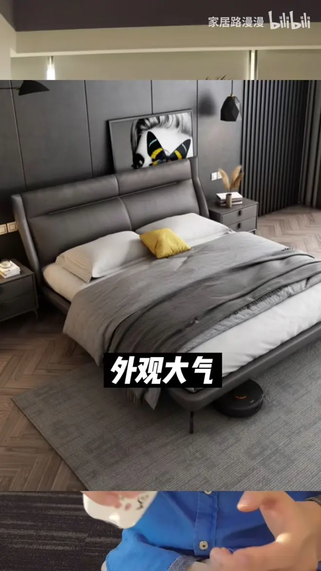 5️⃣第六款林氏木叶的轻奢软包床👏,线条简洁,靠背舒服,真皮材质,一米八的,到手才2199,😊