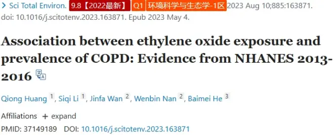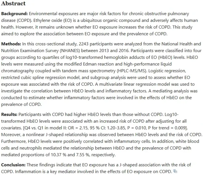 文章题目:环氧乙烷暴露与COPD患病率之间的关系:来自NHANES 2013-2016的证据