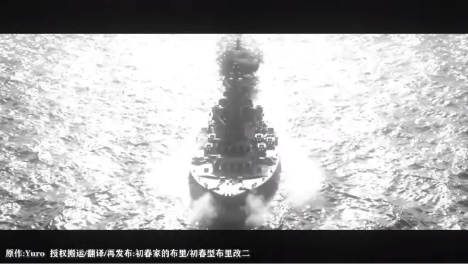 继续绕舰体一圈,期间有数次细小闪电照亮部分舰体,舰体和海面的对比较开头更明显,战舰始终清晰可见,让人持续感受到压迫感