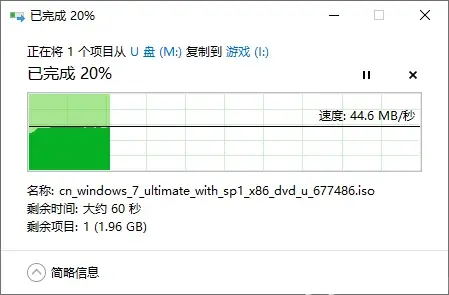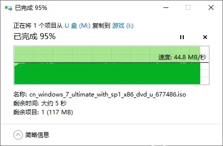 测试文件:Win7旗舰版32位SP1原版镜像,约2.47GB