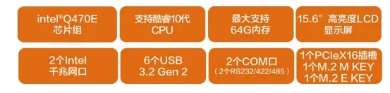 扩展:该机还包含1个PCIe x16插槽和1个M.2 E Key 2230 (PCIe x1/USB2.0),为扩展其他设备提供了方便。