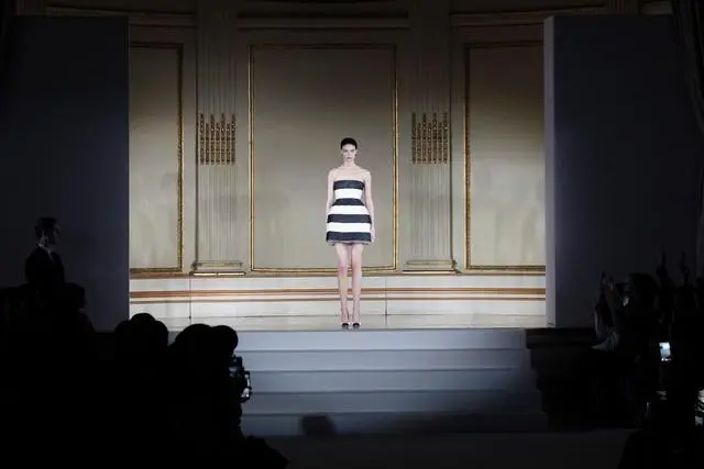 2月13日,模特在美国纽约时装周上展示Carolina Herrera品牌的2023秋冬新品时装。新华社/美联