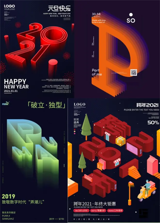 说起“切面排列风格”风格海报?它通过混合效果,营造出了立体感,让画面层次分明。解释再多不如眼见为实,那请小伙伴们跟着我欣赏一些切面排列风格的海报吧!