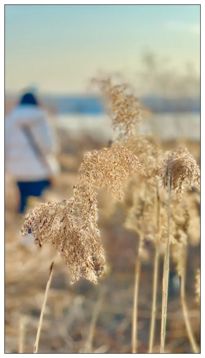 我静静地坐在岸边,看看蓝天白云,还有蓝天映衬下的芦花,显得素雅与清简,朦胧与诗意,独立和自由。忘记时间,忘记地点,也忘记自己。当微风轻轻拂过水面时,泛起层层涟漪的周围是一大片枯黄的芦苇,托起的一簇簇芦苇花。