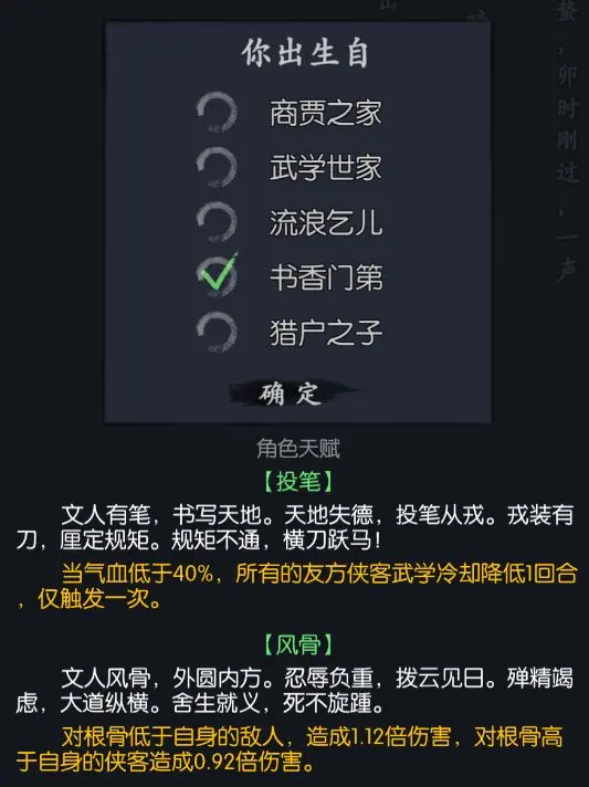 我们先随便选个区,建角色,性别选女,天赋选书香门第,强烈推荐萌新或者微氪党玩恒山,不管是前期推图推历练,还是前几天通天拿资源都有巨大优势!书香门第天赋在推历练,打通天都有作用,总之,不要玩血刀!(血刀确实强,但是玩血刀前先想好要氪多少)!