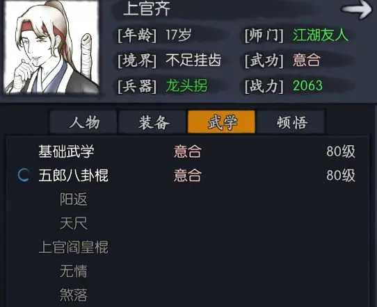 上官齐(过1-4后去1-3邀请进队):龙头拐、布鞋、牛皮背心、斗笠