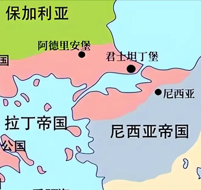 于是乎转年伊凡·阿森二世就中断了与尼西亚帝国的合约,并于公元1237年与昔日对手拉丁帝国联手,把尼西亚帝国在巴尔干的领地全数占领,以防拜占庭帝国的卷土重来。