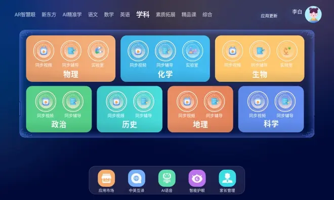 着重来说下学习方面吧,长城G9的课程资源包含小学、初中和高中这三大学龄段。除了语数英这三大主科有专门的学习模块以达到同步精准学习外,还提供了文、理各学科的同步视频、同步辅导、实验室等特色功能。