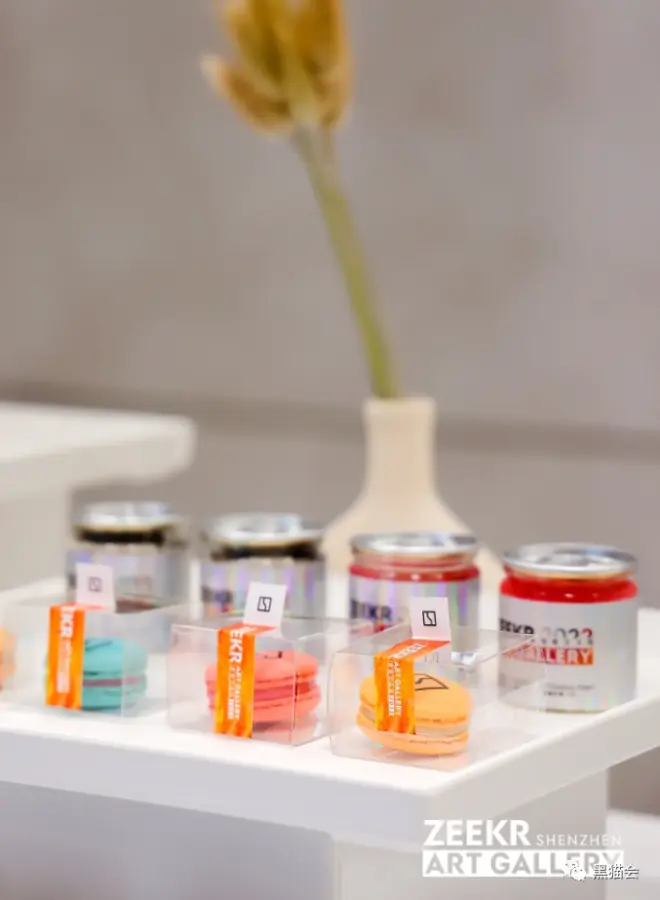 极氪艺术馆的主题在素雅的餐食接待台上也体现出来。