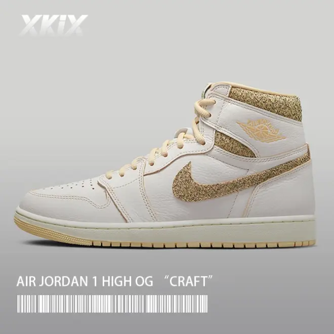 这双 AJ 1 High “Craft”整体配色由干净清爽的帆色与淡香草色组成。材质方面,采用了优质泡沫和双层帆布材料制成。
