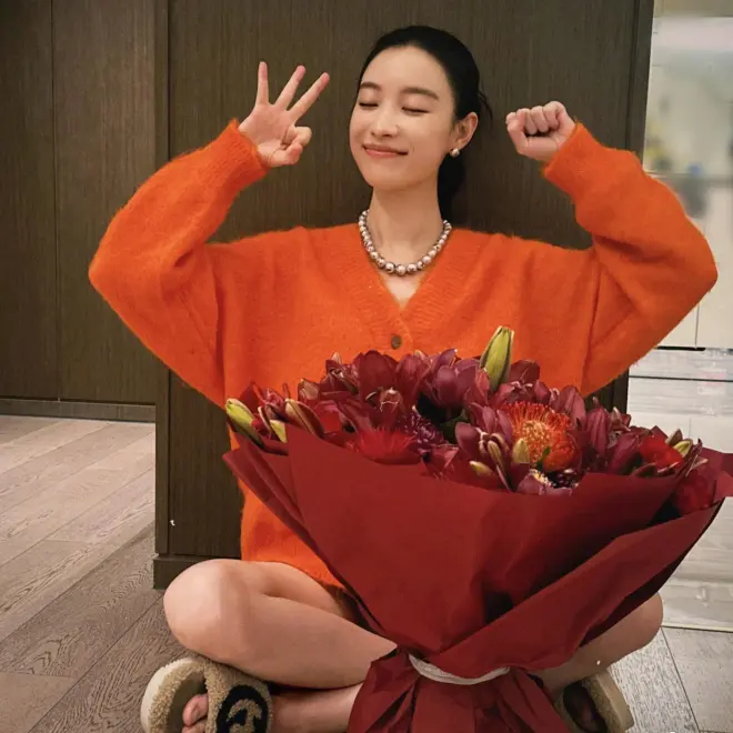 灰色基础款针织衫搭配了两条不同形状的珍珠项链,小chic发现倪妮的很多配饰都是珍珠元素,不得不说倪妮的气质与珍珠的适配度100%。圆形短款珍珠项链能够很好的修饰脖子,更加修长白净。