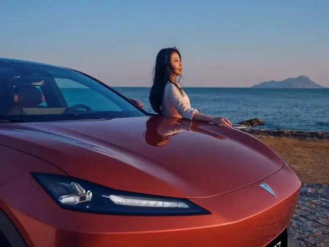 而深蓝S7更大的创新在于副驾,其中充满想象力的12.3英寸副驾超感智慧屏,取代传统遮阳板,兼具遮阳与娱乐功能,支持语音与专属按键一键触控调节,可实现0-135°超大角度旋转的无级调节;支持投屏功能、同时屏内包含主流音乐、视频APP等,配合女王座驾的一键躺平功能,堪称同价位最舒适副驾。
