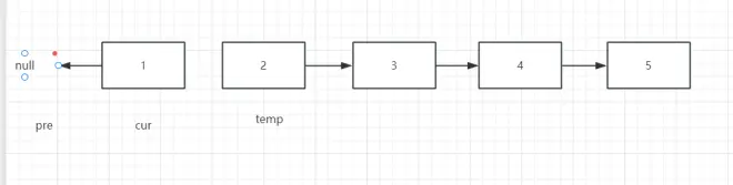 直到cur为Null时,pre指向反转后的头节点 5,这个方法包含了cur为null的情况