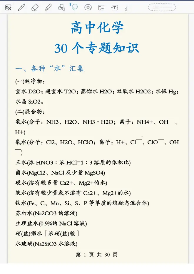 今天给同学们汇总高中化学30个分类专题,