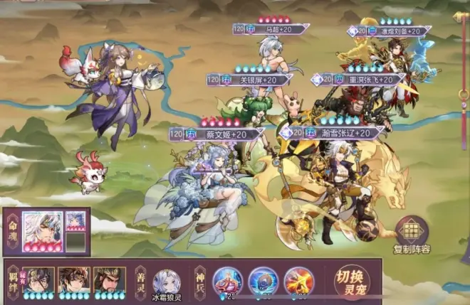 武将:凛煜刘备-赵云护法、重溟张飞-关羽护法、瀚雪张辽-乐进护法、马超(命魂觉醒+专属幻武)、关银屏(专属幻武)、蔡文姬(命魂觉醒+专属幻武)