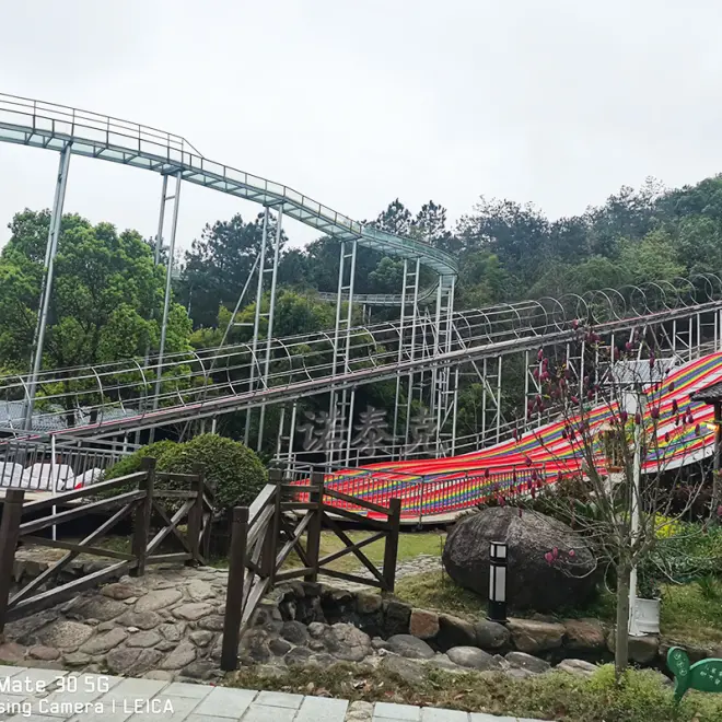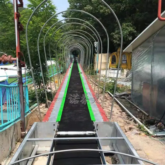 景区魔毯在支撑方面搭建了大量钢架结构,其兴能高,放心客靠,及时在距离地面过高的地方也无需单心。