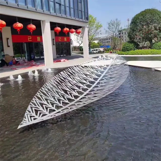不锈钢树叶雕塑的造型有很多种,镂空树叶雕塑是其中的一种,其制作过程是比较简单的,现在电脑上作图,然后使用激光切割机切割出想要的图片和造型,再经过人工焊接,锻造需要的造型即可。这种树叶雕塑制作成本低,一般制作拉丝或者镜面效果,看起了大气,经常用于小区等场所。不锈钢镂空树叶雕塑的做法和类型有很多,我们都可以加工定制,只要您提供相应的图纸或者图片,我们就能实现。
