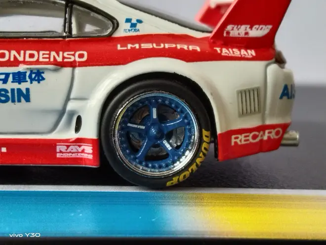 最后,TW品控大家懂得都懂,这台95年版27号丰田Supra GT LM整体漆面与水贴质感表现中规中矩,车尾灯的糟糕表现也拖了小车做工的后腿,但小车胜在轮毂丰富的细节表现,以及相较于TW预售的同款Supra GT嘉实多涂装更加实惠的价格。个人入手这台车完全是因为喜欢丰田车队而收车型,对于追求品控的玩家真心不是很推荐,但是对于车型涂装党还是值得考虑的。