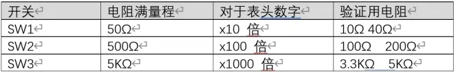 闭合SW3,也就是5KΩ档开关。在待测电阻位置接入5K电阻并串联电流表。调节P3,使电流到达200uA。