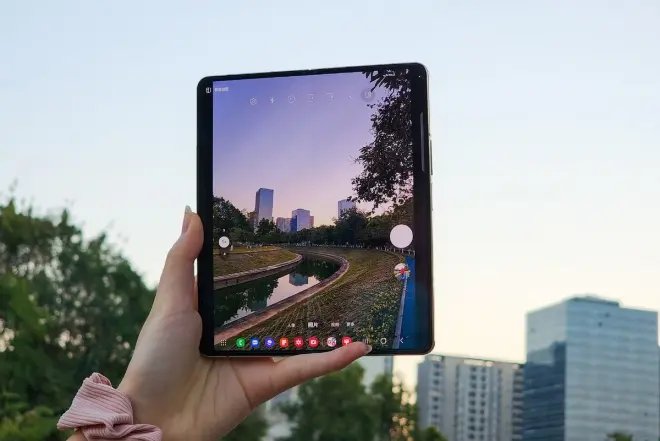 三星Galaxy Z Fold4的双屏幕折叠设计实现了真正的单手操作,手指可以轻松触及整个屏幕,同时支持120Hz的刷新率。当打开内屏时,三星Galaxy Z Fold4便成为了一款迷你平板,支持1-120 Hz的自适应刷新率,无论是看电影、浏览图片还是玩高帧率游戏,都能提供出色的体验。其窄边框设计和高达1000 nit的亮度,即使在日光下也能确保良好的视觉效果。