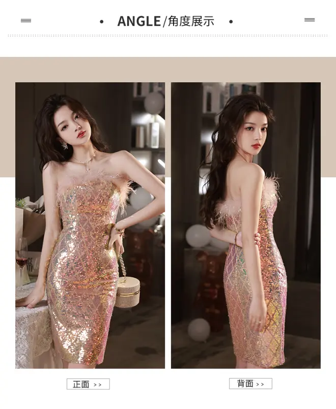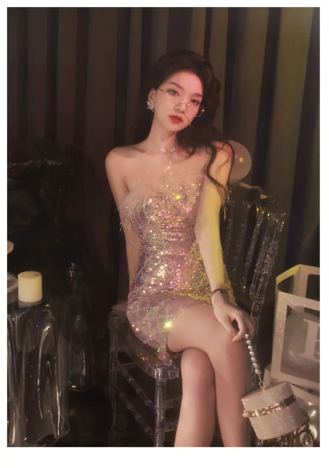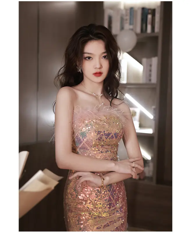 » 亮片礼服高端轻奢小众高级感人鱼姬主持人抹胸生日名媛宴会女气质