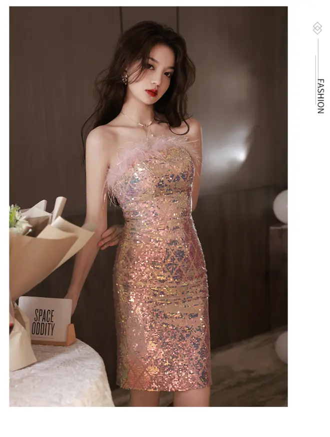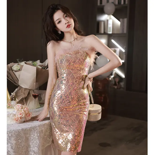 亮片礼服高端轻奢小众高级感人鱼姬主持人抹胸生日名媛宴会女气质的评论 (共