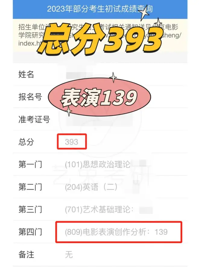 2023表演系考生成绩预览(部分)