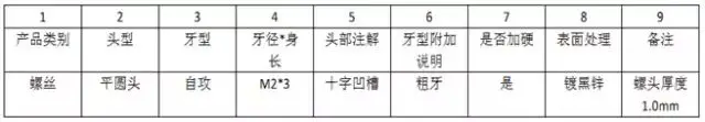 以下是螺钉规格表。