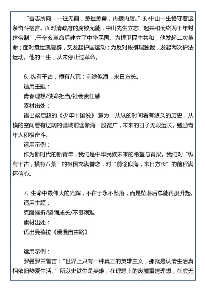 高中语文在高考中是越来越重要的,想考重点大学,语文成绩决不能低于100分!想要语文成绩高,就要抓住,高中作文这个命脉!而作文的命脉一般就在素材中体现,和主题呼应的作文素材可以升华文章的主旨!直接抓住阅卷老师眼球!