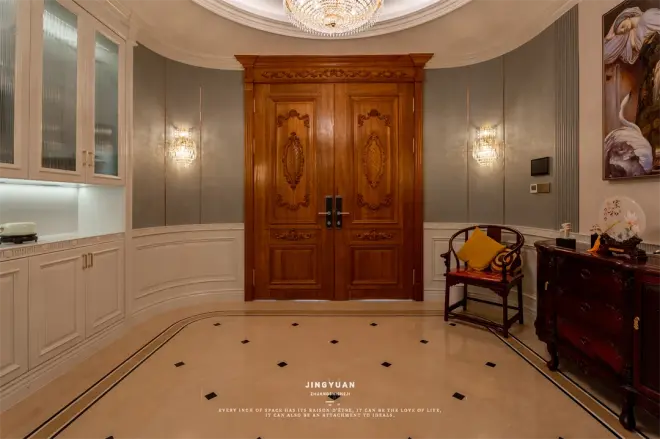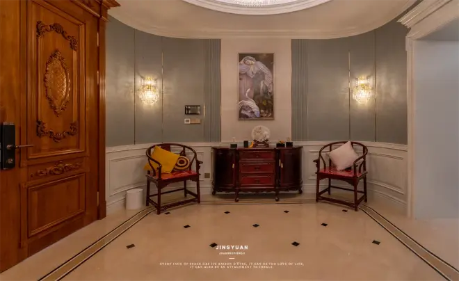 窥一斑而知全豹,从门厅就能看出业主对这套房子的风格定位是偏向中西结合的。