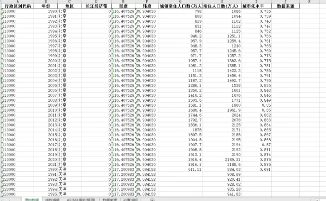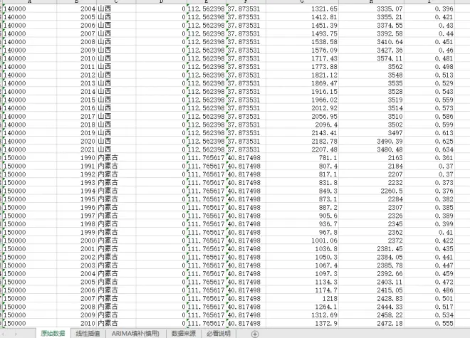 数据整理:内含原始数据、线性插值、ARIMA填补版本