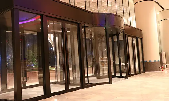 提升形象和品质:两翼自动旋转门采用现代化的设计和材料,外观美观大方,可以提升建筑物的整体形象和品质。无论是商业建筑还是公共场所,使用两翼自动旋转门都能给人一种高端、先进的感觉,增加用户的好感度和满意度。