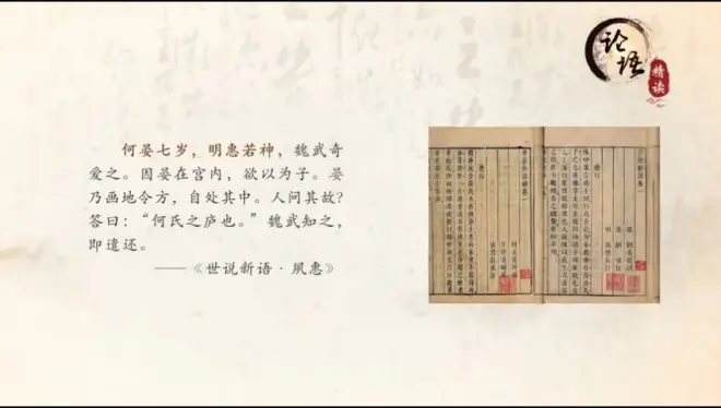何晏神童,魏武帝曹操,划地为庐,不姓曹。魏明帝,颜色皎然,美!