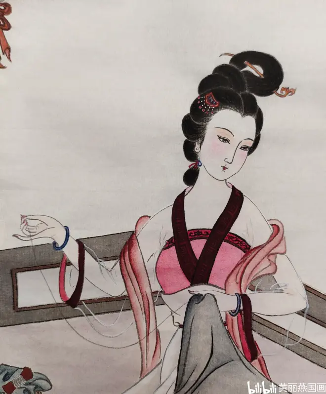 夏夜针黹图(黄丽燕国画古典工笔画传统人物画仕女图)的评论 (共