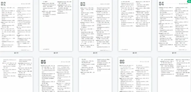 基础必背词群包含323个词群, 总计1605个单词.词群分布整体由 易到难,综合了考频、难度及写作、 翻译实用废等各个方面进行排序、以Day 为学习单位,共24个Day.每 个Day中,有一些不构此群的单 个重点词,这些词同样重要.每个 Day大约包55-75个单词,覆盖了 大多数考研必背的基础词. 【泽程读研PDF】