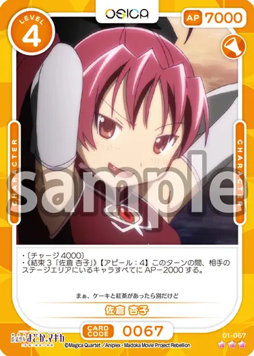 佐仓杏子——3级SR解锁新成就-身板的新高度17000!主玩Charge,主要输出角色的Charge都能达到6000,输出能力上是不用担心的。防御方面有张2级5000角色[069]能换位是很强力的,还有张事件[097]能把场上三张本家互换位置,可以来场田忌赛马了!因为没限制要求舞台区的橘色,所以前后排都能自由互换,表现应该会不俗。本家的另一张事件,反击时只要2费按倒对方一人,作为为数不多的防守手段是合格的。