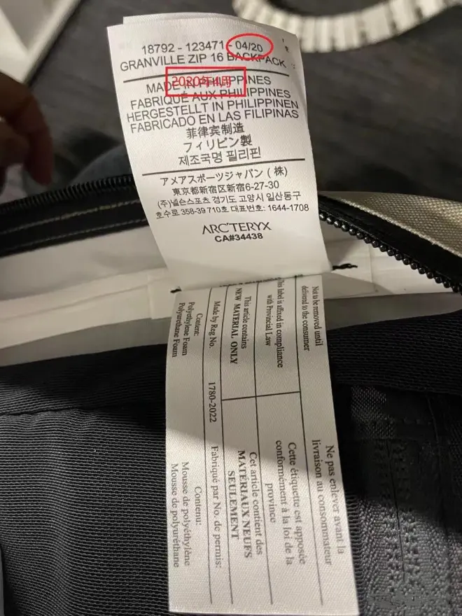 比如始祖鸟冲锋衣的生产日期,一般在洗标上可以查看到。